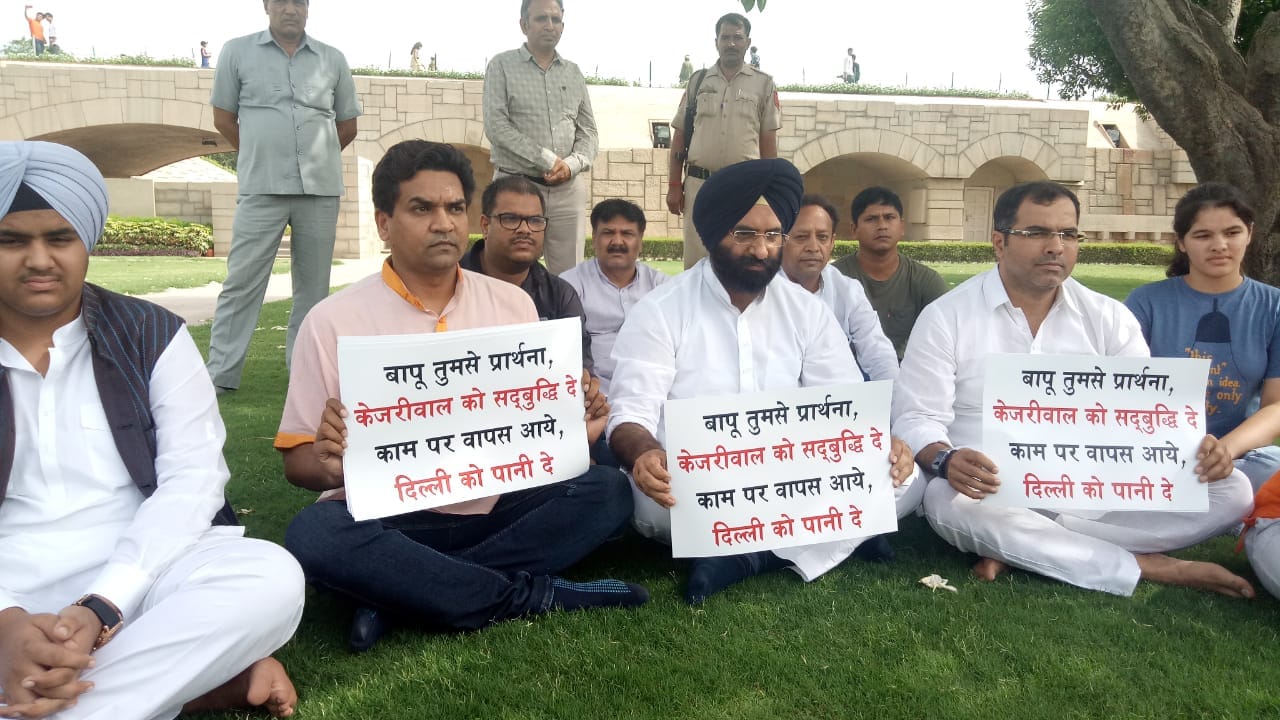 BJP and Akali Dal members protest at Rajghat against Kejriwal hunger strike